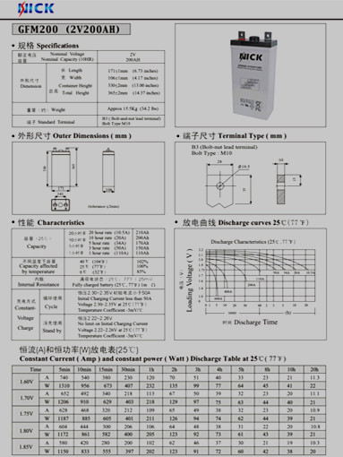 产品技术特性: 高度均一性:<20MV 超长浮充及循环寿命80% DOD800次以上 符合国际搞震要求;耐过流冲放电冲击;高效电率特性等。 铅锡多元合金:内阻小,耐腐蚀,能经受长期使用 ABS工程查塑料外壳;不易变形;抗老化。 硅氟橡胶密封帽;安全、防爆 铜基镀银端子;接触电阻小。