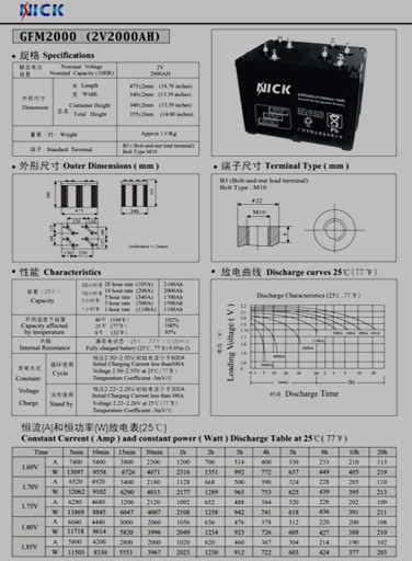 产品技术特性: 高度均一性:<20MV 超长浮充及循环寿命80% DOD800次以上 符合国际搞震要求;耐过流冲放电冲击;高效电率特性等。 铅锡多元合金:内阻小,耐腐蚀,能经受长期使用 ABS工程查塑料外壳;不易变形;抗老化。 硅氟橡胶密封帽;安全、防爆 铜基镀银端子;接触电阻小。