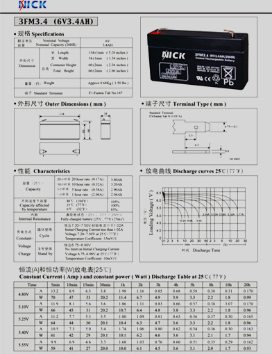 产品技术特性: 高度均一性:<20MV 超长浮充及循环寿命80% DOD800次以上 符合国际搞震要求;耐过流冲放电冲击;高效电率特性等。 铅锡多元合金:内阻小,耐腐蚀,能经受长期使用 ABS工程查塑料外壳;不易变形;抗老化。 硅氟橡胶密封帽;安全、防爆 铜基镀银端子;接触电阻小。