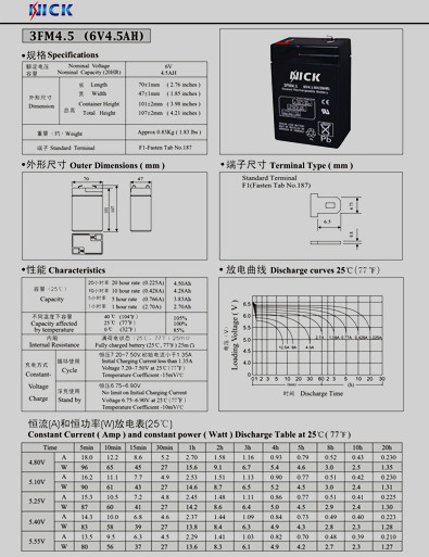 产品技术特性: 高度均一性:<20MV 超长浮充及循环寿命80% DOD800次以上 符合国际搞震要求;耐过流冲放电冲击;高效电率特性等。 铅锡多元合金:内阻小,耐腐蚀,能经受长期使用 ABS工程查塑料外壳;不易变形;抗老化。 硅氟橡胶密封帽;安全、防爆 铜基镀银端子;接触电阻小。