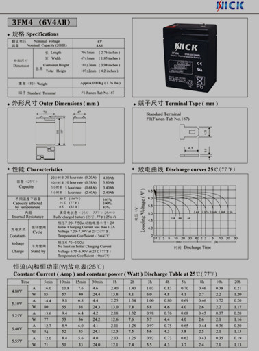 产品技术特性: 高度均一性:<20MV 超长浮充及循环寿命80% DOD800次以上 符合国际搞震要求;耐过流冲放电冲击;高效电率特性等。 铅锡多元合金:内阻小,耐腐蚀,能经受长期使用 ABS工程查塑料外壳;不易变形;抗老化。 硅氟橡胶密封帽;安全、防爆 铜基镀银端子;接触电阻小。